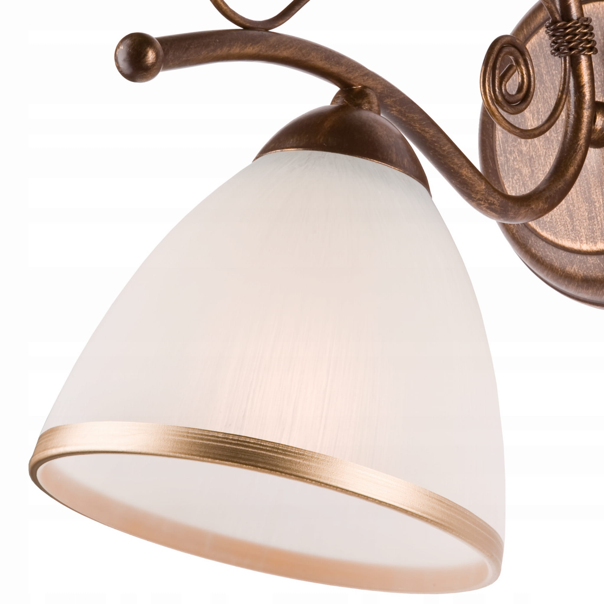 Kinkiet znakomicie prezentuje się z żarówkami przeźroczystymi typu edison, jak również z mlecznymi ledami w kształcie kulki lub tradycyjnej żarówki.