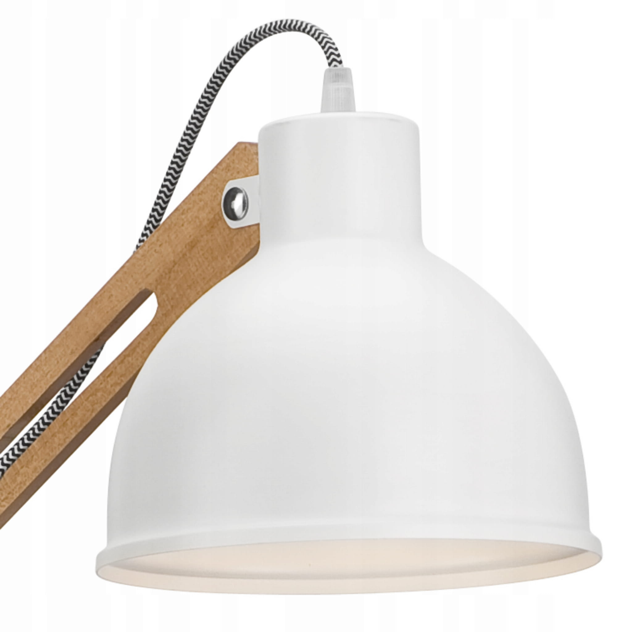 Klosz od wewnątrz pokryty jest białą farbą proszkową w wersji mat. Poprzez ażurowe ramię efektownie poprowadzono luzem przewód prądowy w tekstylnym oplocie w kolorze czarno - białym tzw zig-zag.