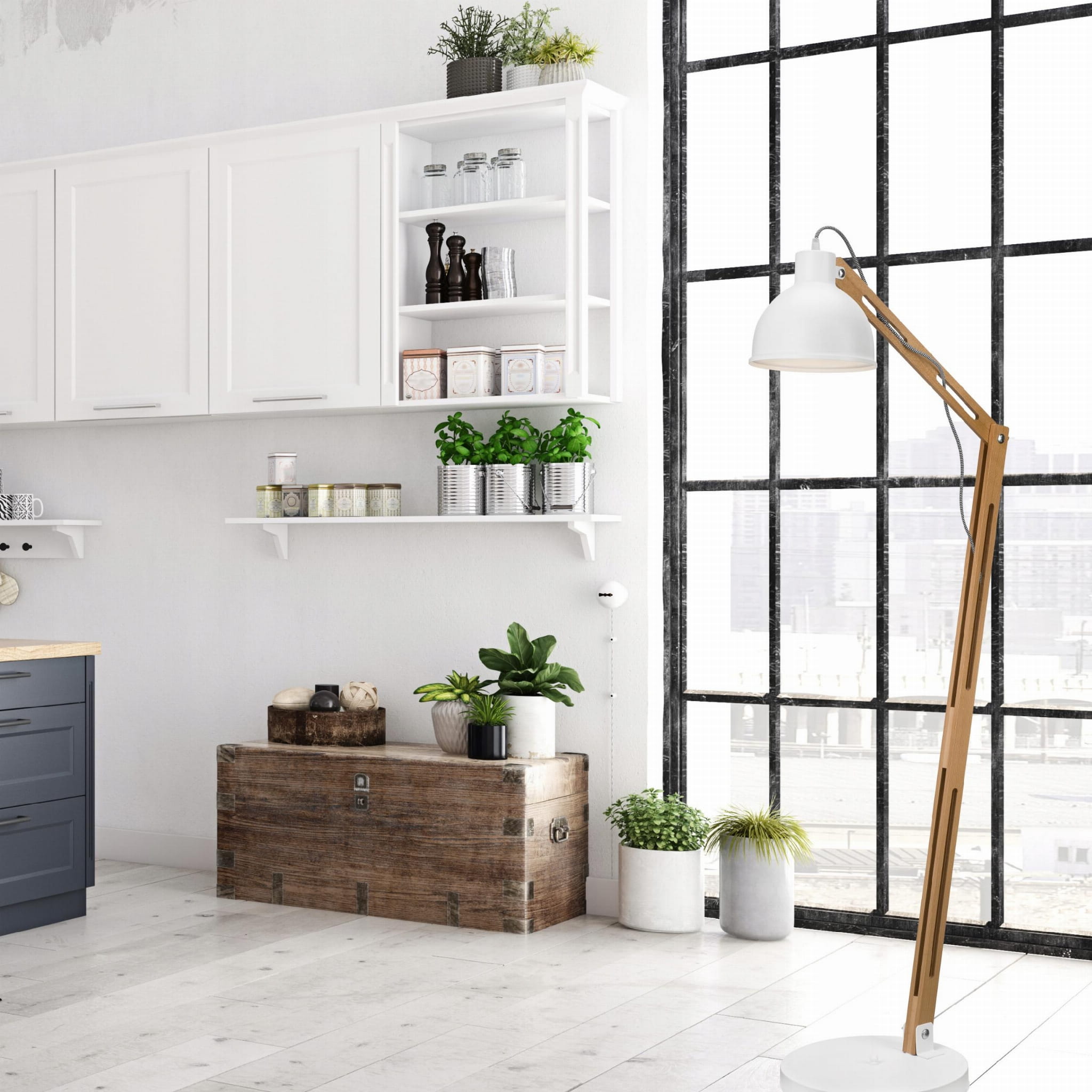 Lampa PODŁOGOWA Stojąca Loft BIAŁA Drewno BUK LUX