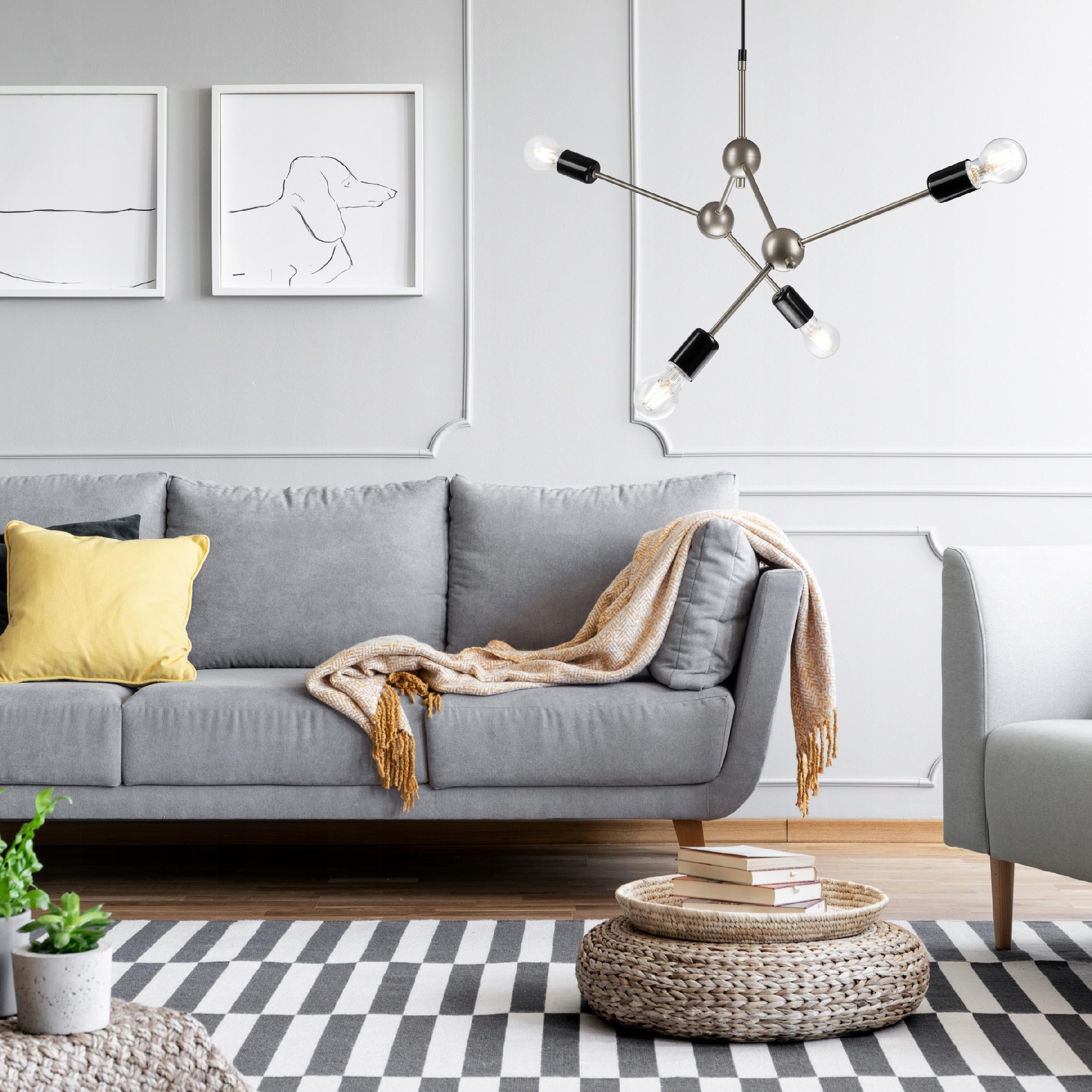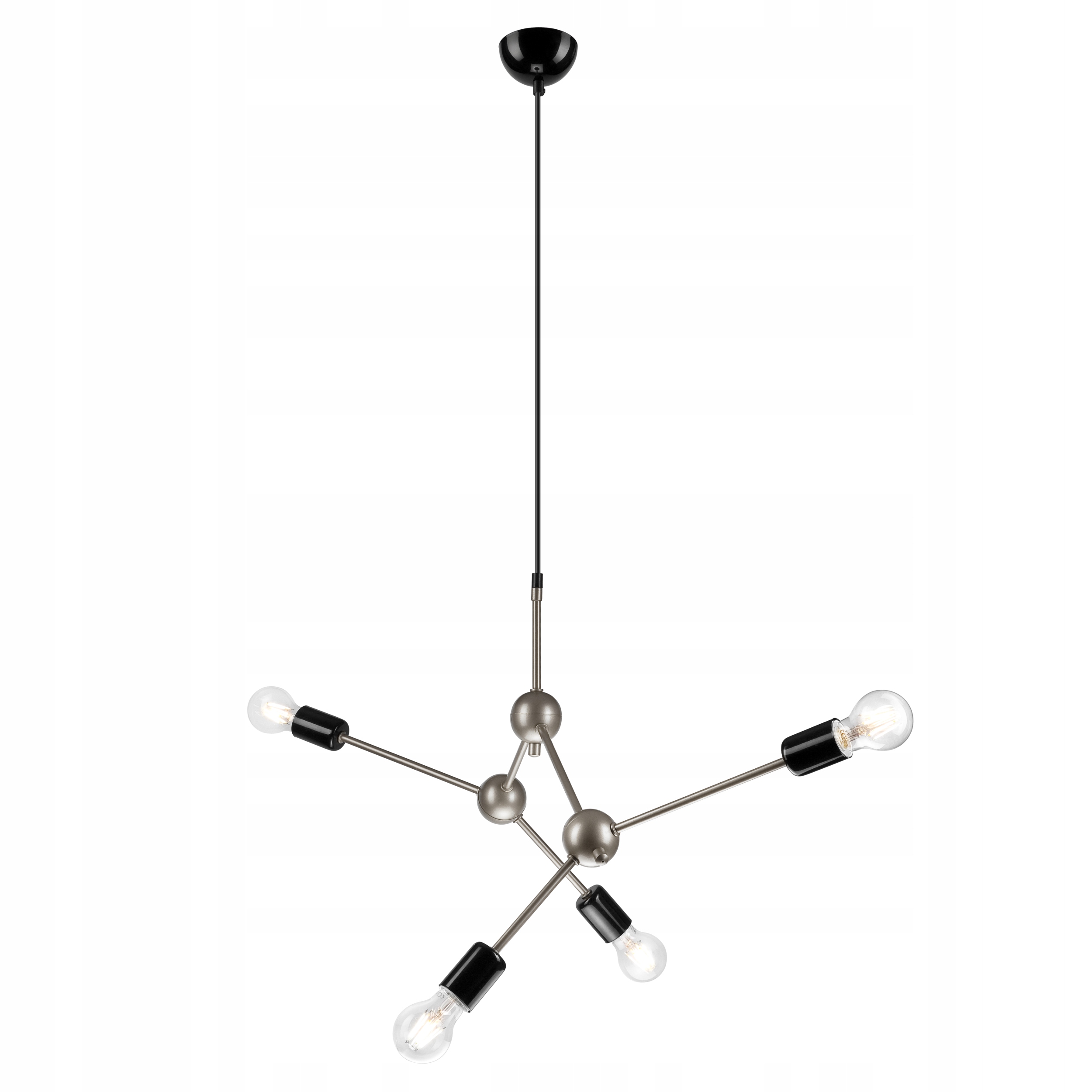 To nowoczesna lampa 4 ramienna wisząca na czarnej lince w stylu loft, wykonana ze stali, pomalowana proszkowo.