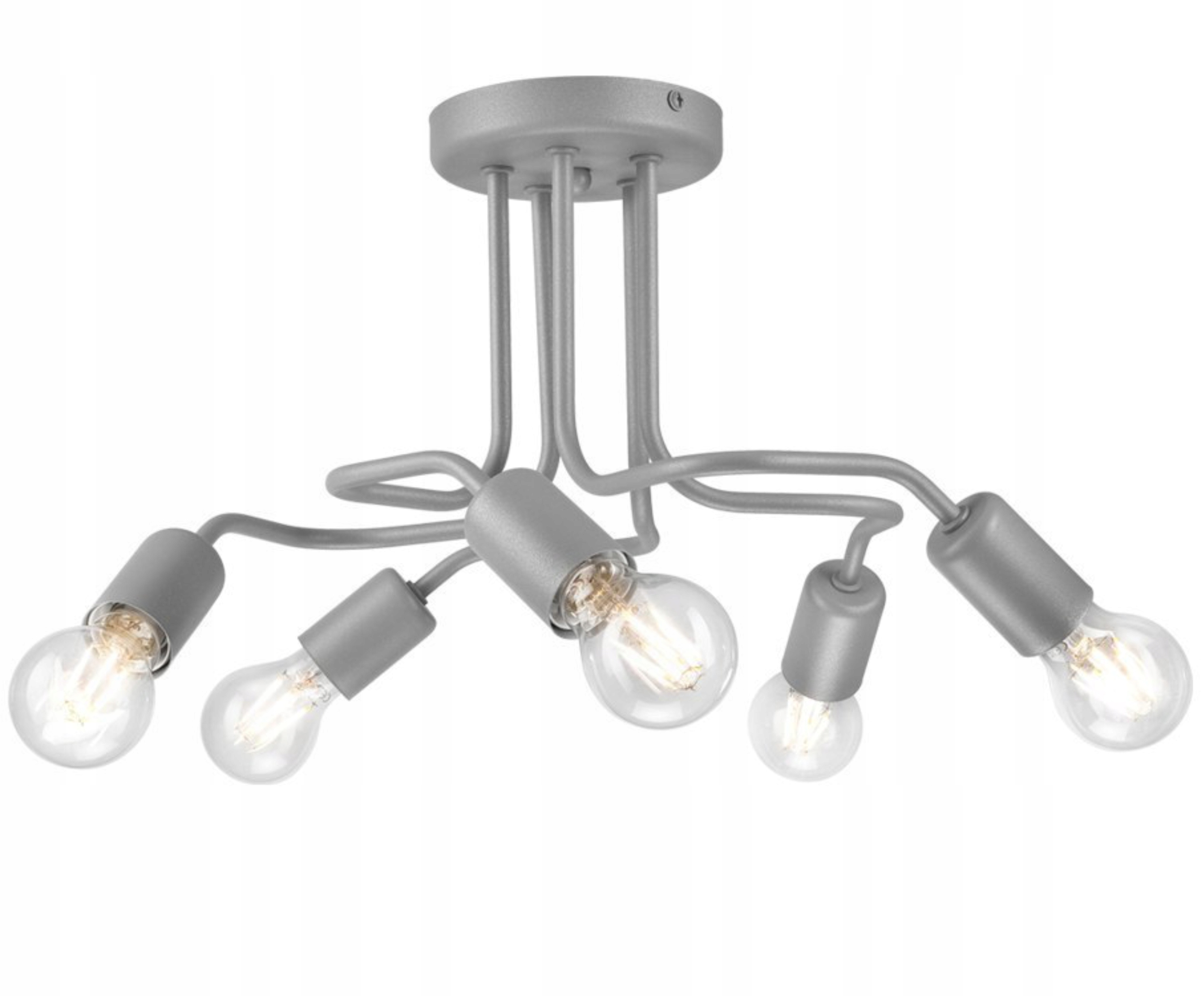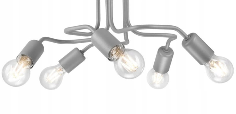 to nowoczesna lampa sufitowa 5 ramienna w stylu loft, wykonana ze stali, pomalowana proszkowo, wykończona w kolorze srebrnym perłowym z delikatnym brokatem (wersja mat).