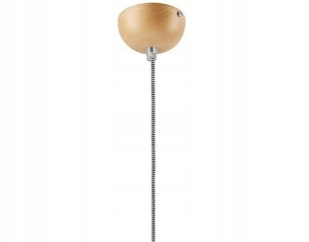 Części składowe lampy to drewniana podsufitka, drewniana podkloszówka oraz szklany klosz.