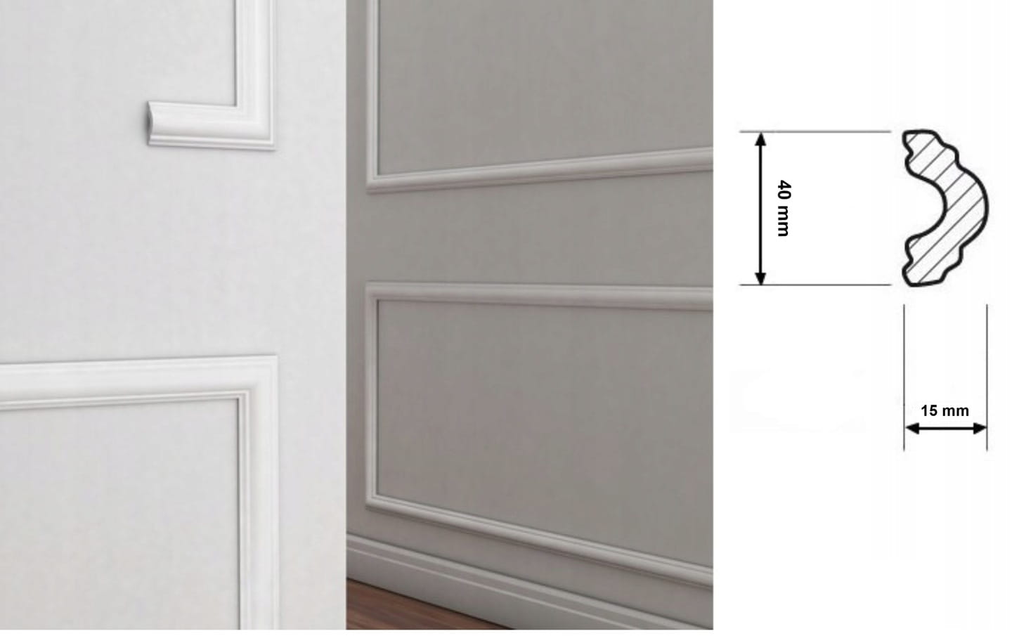 Listwy przypodłogowe oraz przysufitowe wykonane są z polistyrenu.