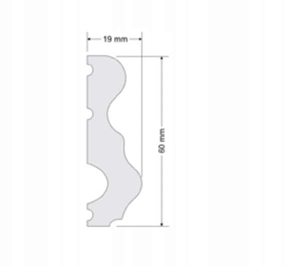 Listwa przypodłogowa cokół faseta 200 cm LP12 - Wysokość: 60 mm Szerokość: 19 mm