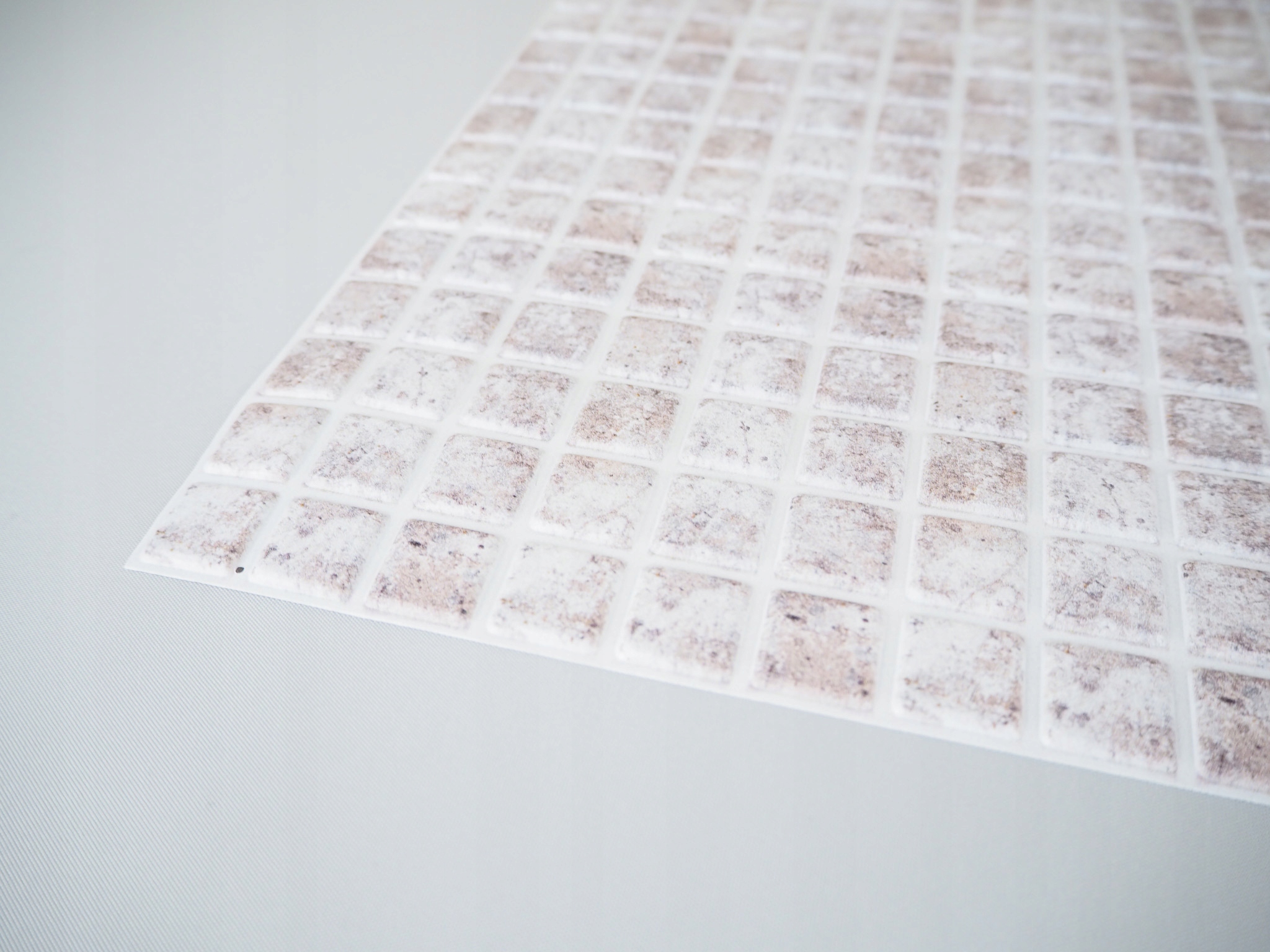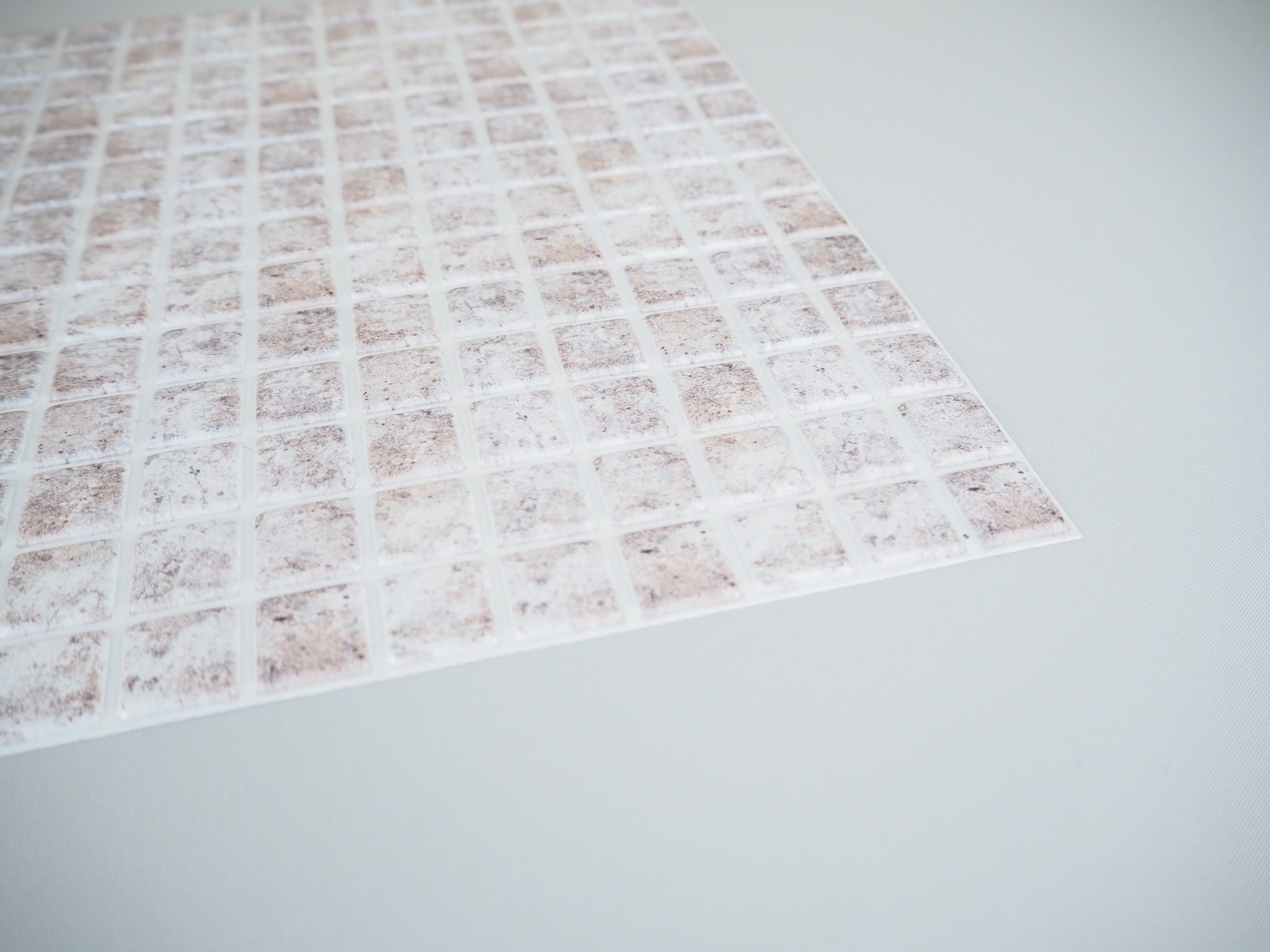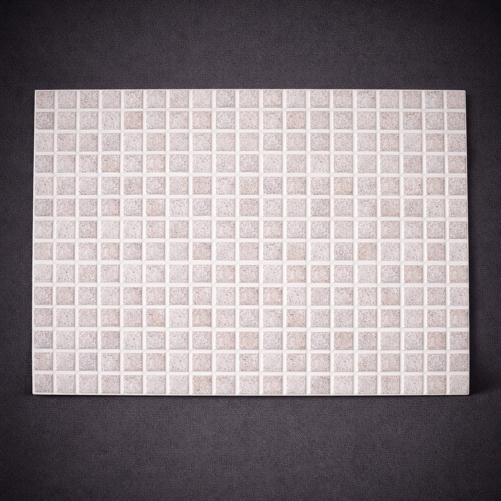 Mozaikę montuje się za pomocą kleju do PCV / paneli / płytek. Nie wymaga fugowania ani specjalistycznych narzędzi. To doskonała opcja, jeśli chcesz uzyskać trwały i estetyczny efekt bez wymiany całych płytek.