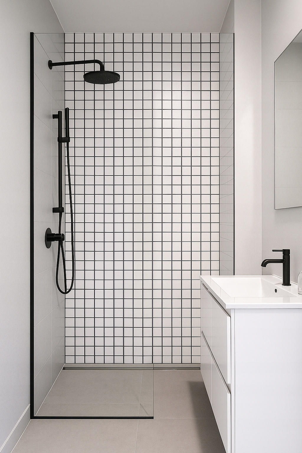 Elegancka mozaika PCV w odcieniach czerni, bieli i szarości. Idealna do kuchni, łazienki, korytarza lub pomieszczeń komercyjnych. Ponadczasowa kolorystyka pasuje do wnętrz nowoczesnych, loftowych i klasycznych.