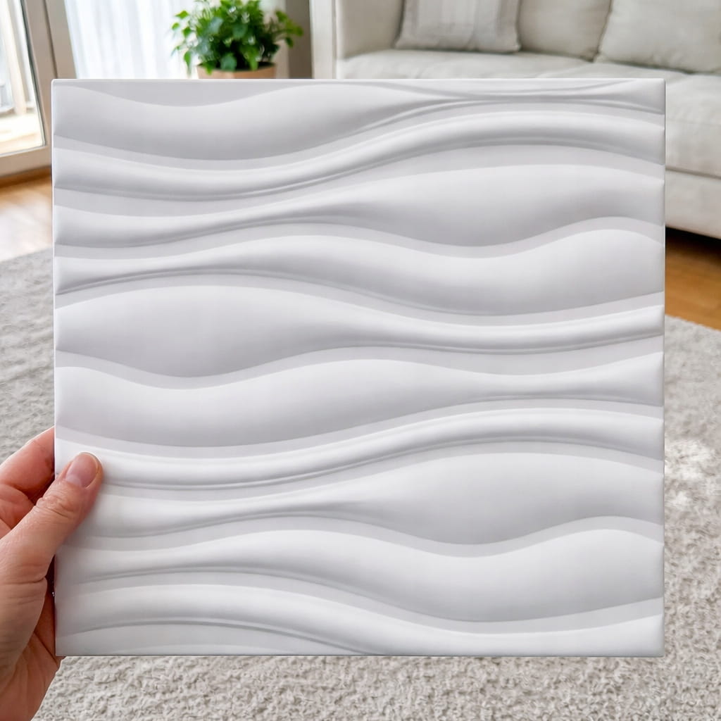 PANELE ścienne Kasetony kaseton Dekoracyjne Sufitowe BIAŁY 3D FALE 50x50 cm
