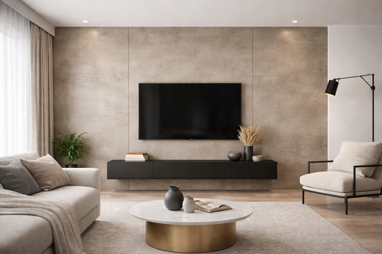 • Salon: stwórz przyciągającą uwagę ścianę za kanapą lub telewizorem — modna głębia i faktura.