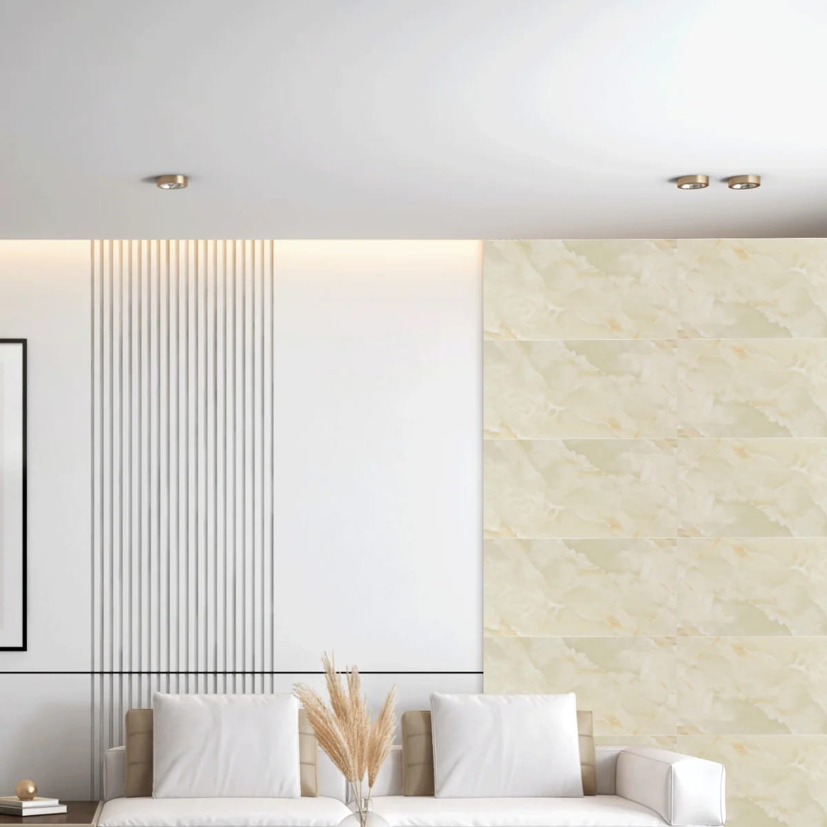 • Salon: stwórz przyciągającą uwagę ścianę za kanapą lub telewizorem — modna głębia i faktura.