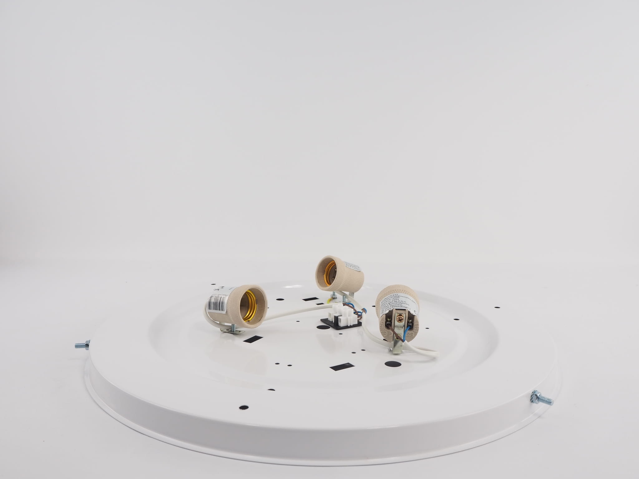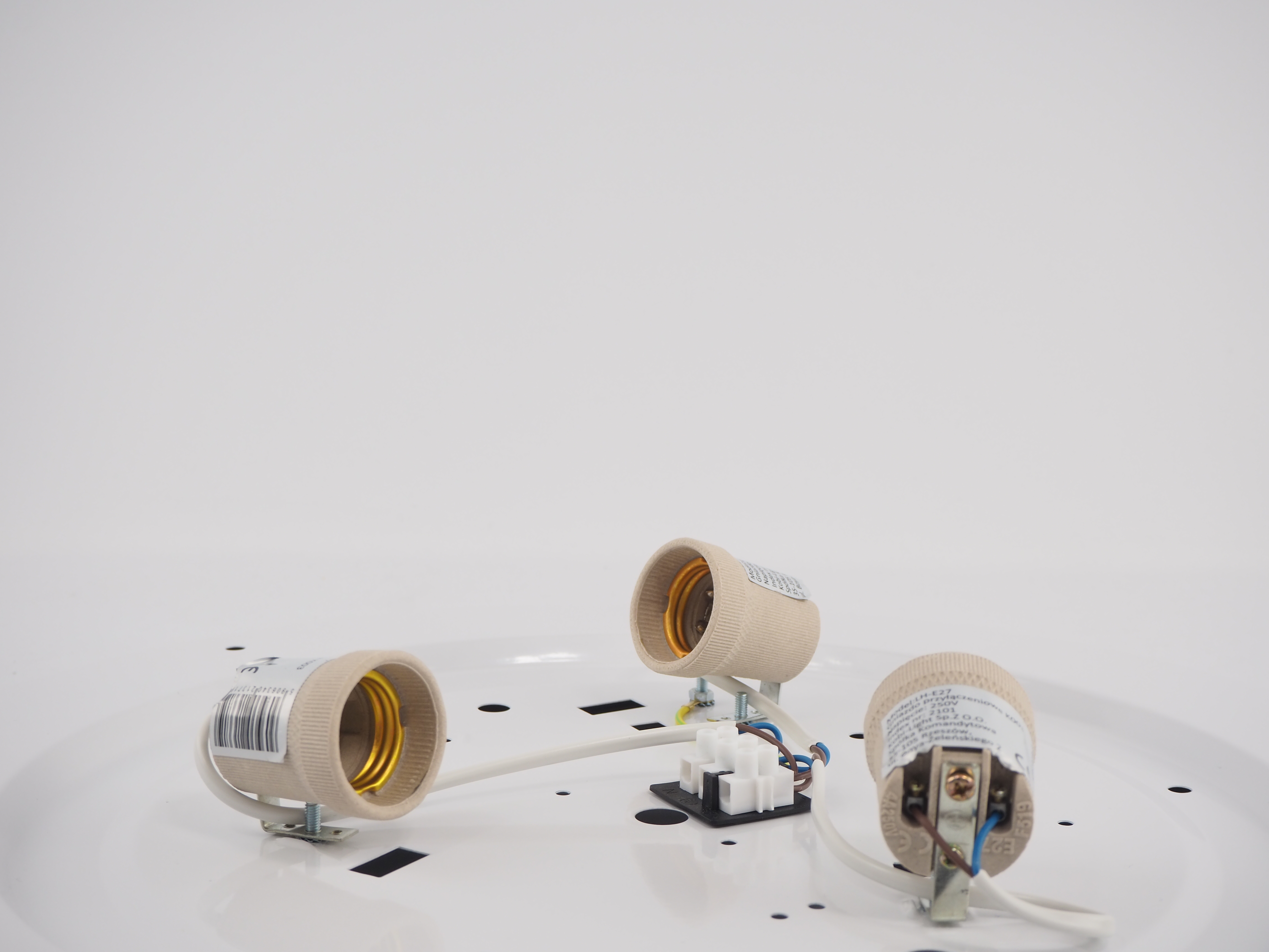 Gdy baza plafonu jest przytwierdzona do podłoża oraz kable podpięte są do kostki, wkręcamy żarówki.