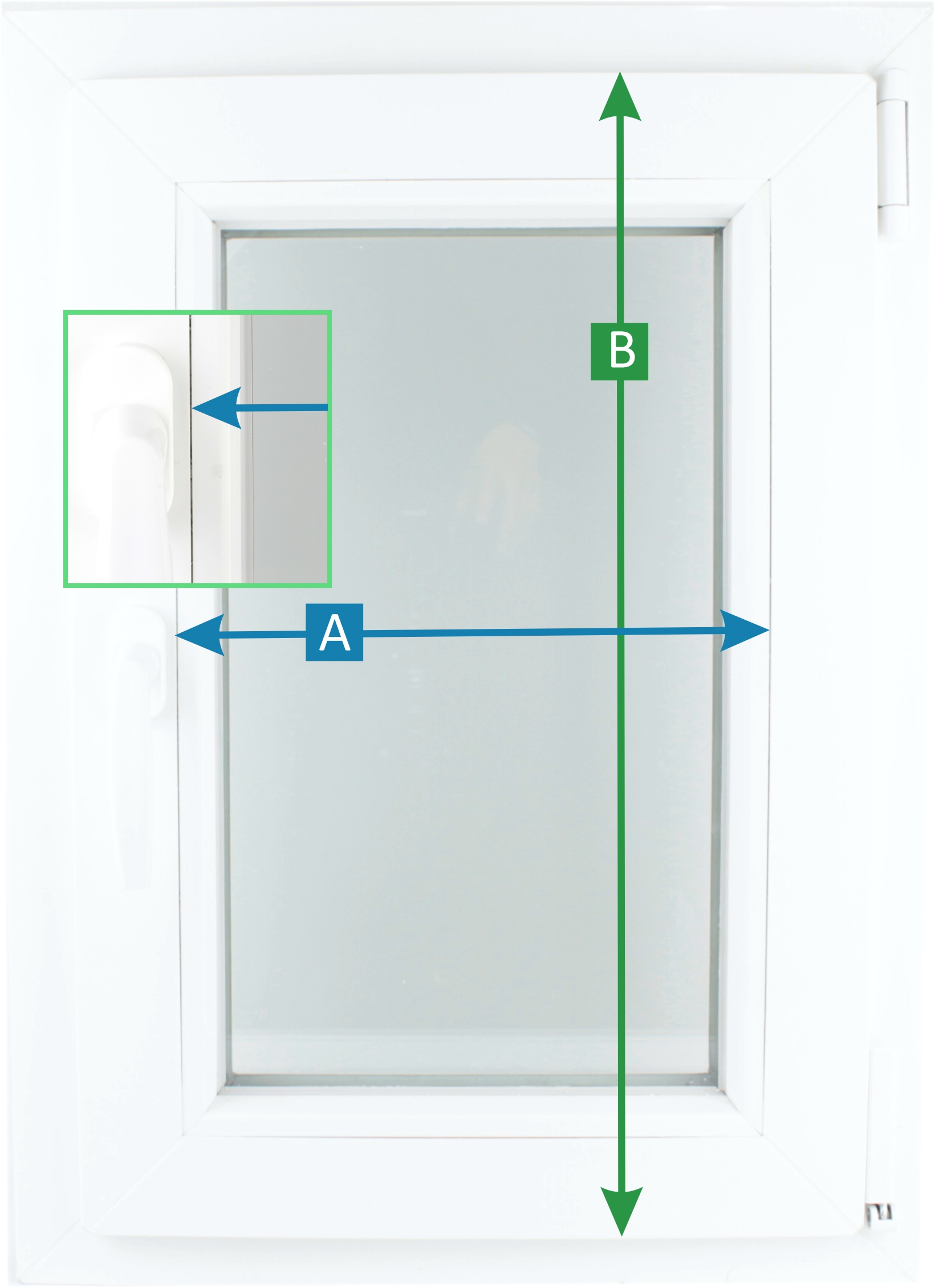 - Następnie należy zmierzyć wysokości skrzydła. Długość rolety powinna odpowiadać pionowej strzałce.
